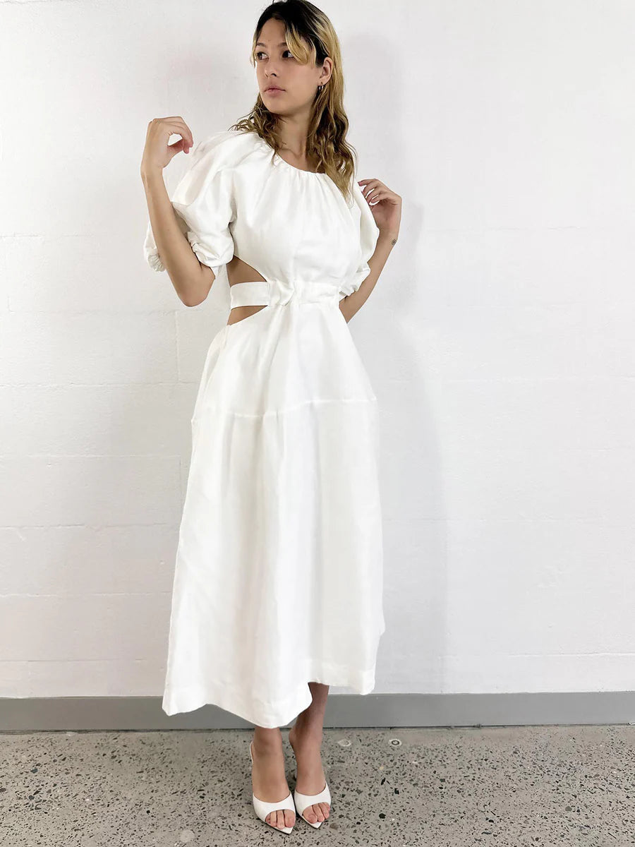 This dress has a fitted bodice, with a relaxed skirt, puffed sleeve and the ultimate detail - hidden pockets.