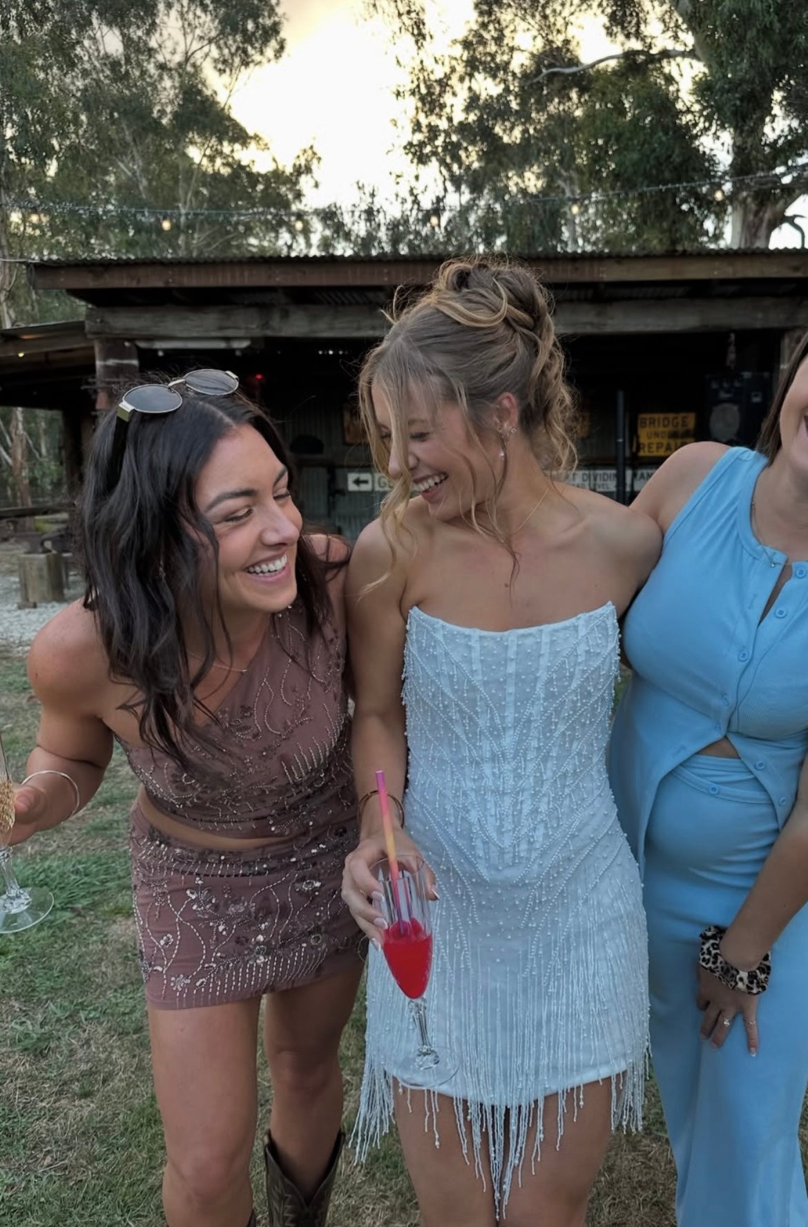 IZABEL is a handcrafted mini dress, she features hundreds of intricately placed white beaded strings on a delicate mesh fabric, creating an eye-catching fringed masterpiece. Ideal for the bride-to-be celebrating a hens night or engagement party, birthdays or any occasion where you want to shine and feel extra glamorous.